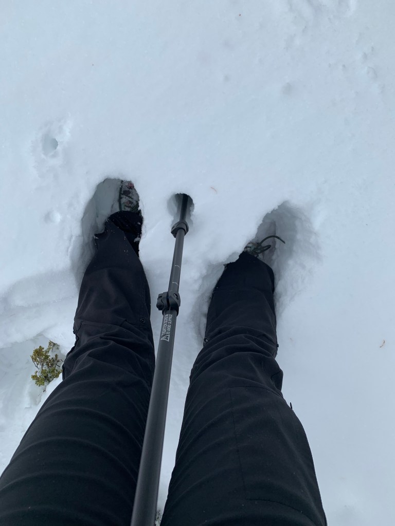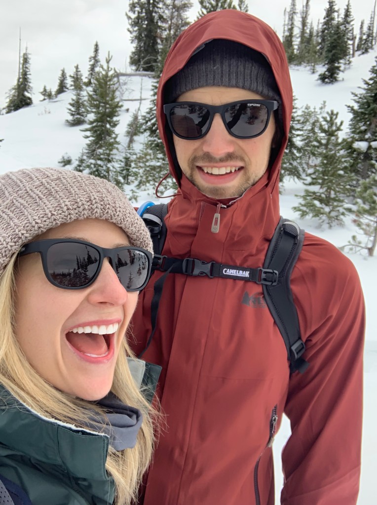 Day one was spent attempting to summit Bunsen Peak which started off FABULOUSLY with our new crampons and trekking poles. We started our climb following along the trail and enjoying the beautiful mountain scenery… the snow was deep in places, but totally manageable. We were also on the high alert for bears, so we took the advice of the rangers and made noise as to not sneak up on anything. By making noise, we decided it was best to sing at the top of our lungs and have full on conversations with the bears we never saw. We eventually lost the trail in almost knee-deep snow… whoopsie. We snagged the obligatory selfie at our best attempt at the summit and made our way back down to the warmth of Charlie parked at the trail head!